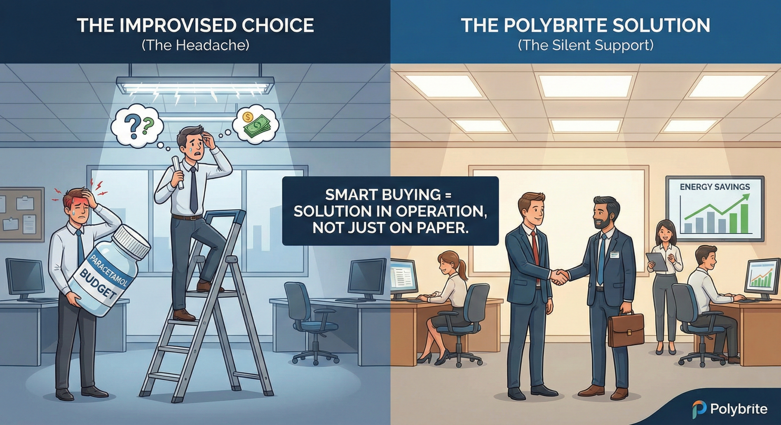 For Polybrite customers, the goal is simple: You should be left with a solution that works in operation, not just on a quote sheet. This means that the products must be suitable for the right application, and that the driver/dimming is chosen consciously. When done right, you get LED that delivers lower energy costs without sending your employees into a paracetamol budget meeting.