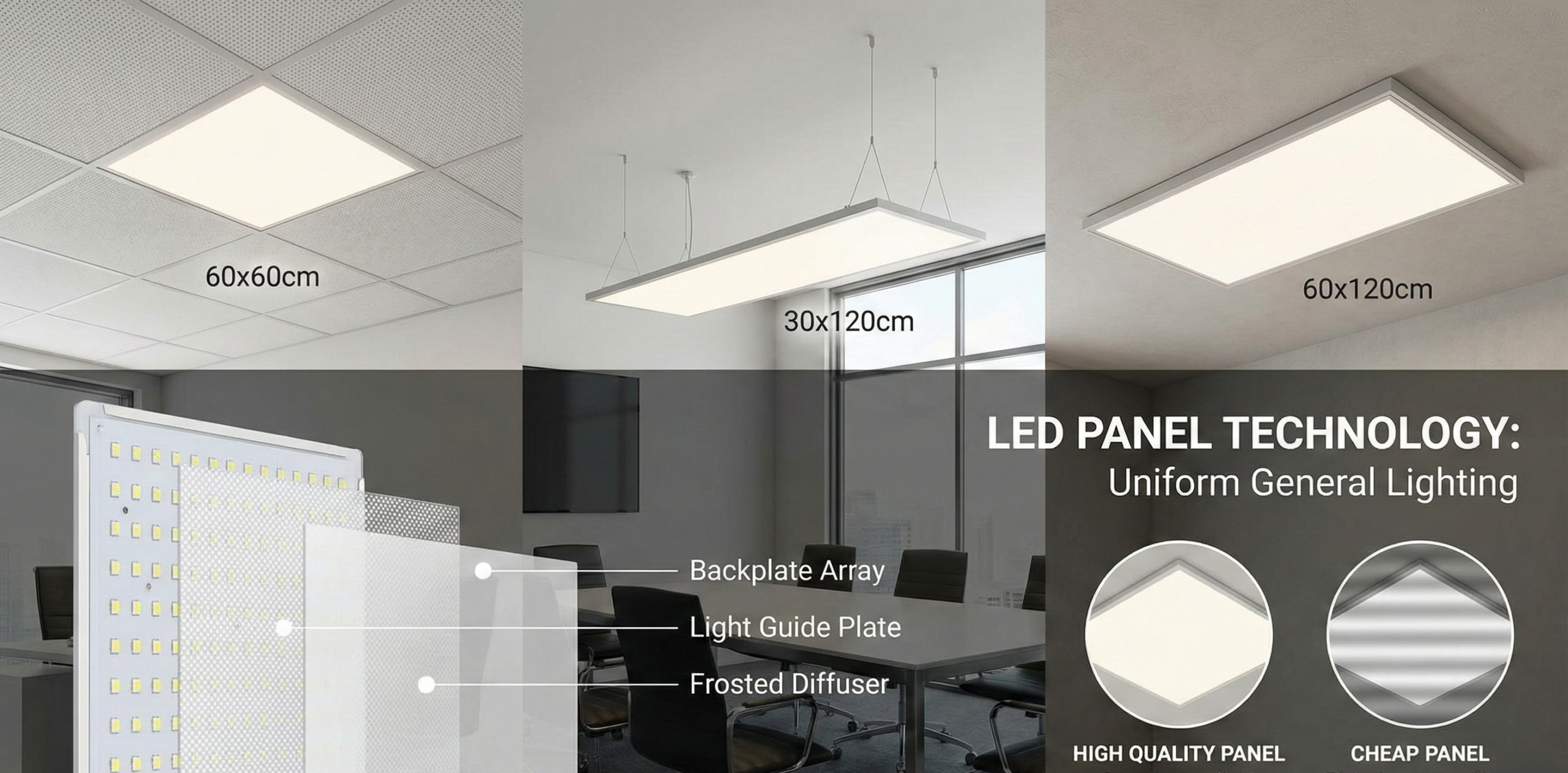 If the goal is uniform, attractive general lighting in rooms with normal ceiling heights, LED panels are often the most cost-effective and aesthetic choice. Typical winners: offices, hallways, meeting rooms, clinics, receptions, schools.